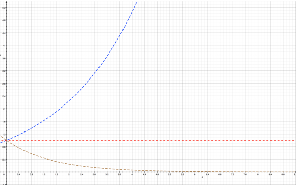 파란색 선이 a>1 일때 , 빨간선인 a=1,
