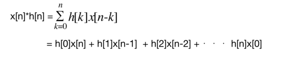 위의 식들을 한번 살펴보자면 입력신호x[n]과 임펄스 응답 신호 h[n]이 서로 영향을 주어서 출력신호 y[n]이 나오게 된다.