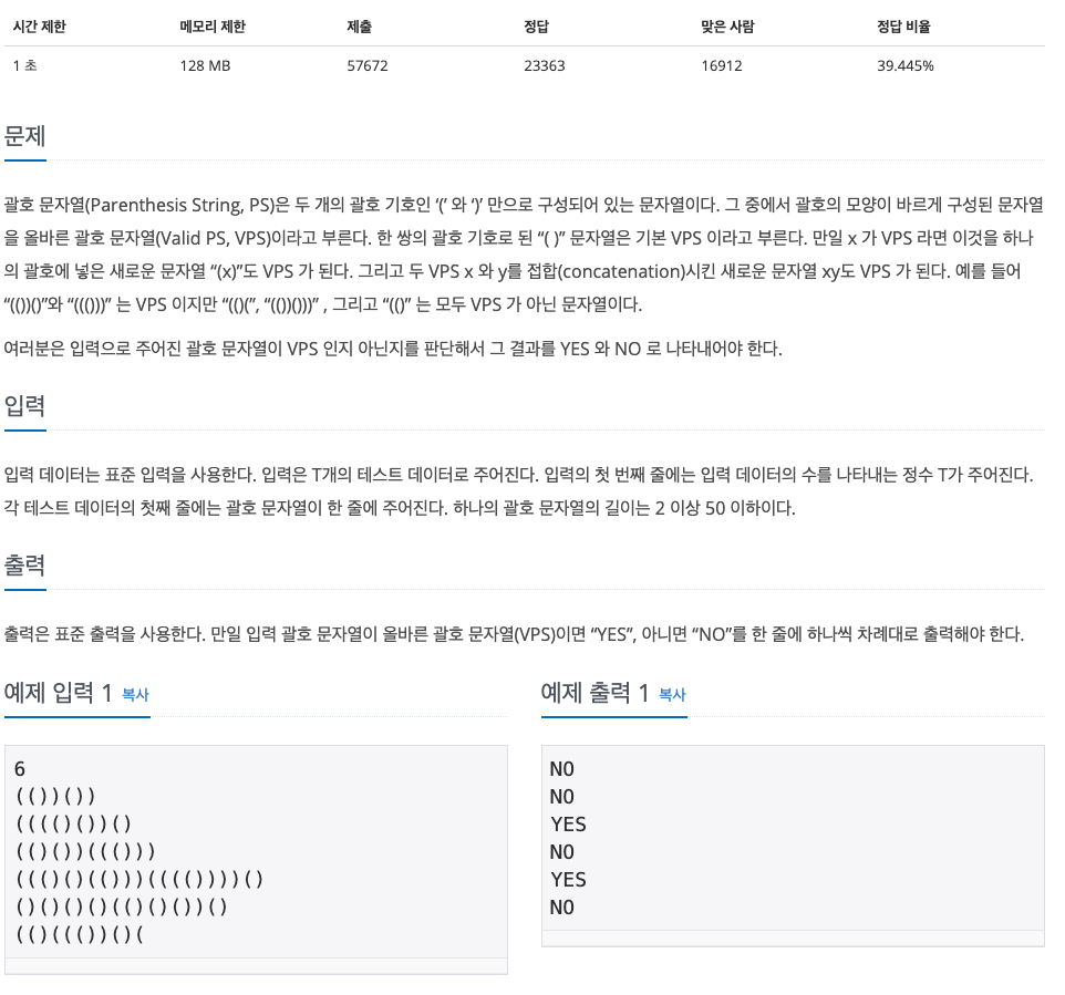 소괄호만 있는 문제여서 그리 어렵지 않게 해결 할 수 있는 문제였습니다.