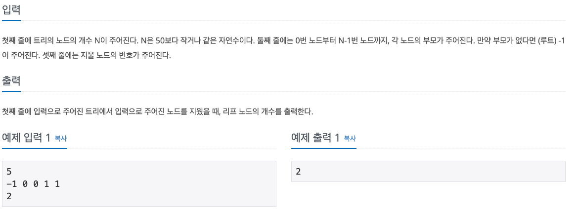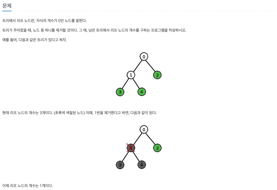 이번에 풀어볼 문제는 백준 1068번 트리 라는 문제이다.
