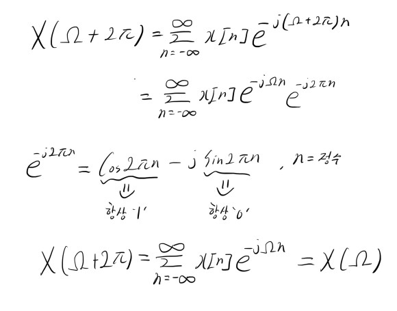 다음의 과정을 통해서 DTFT는 주기성을 가지고 있다는 것을 식으로 확인 해 볼 수 있었다.