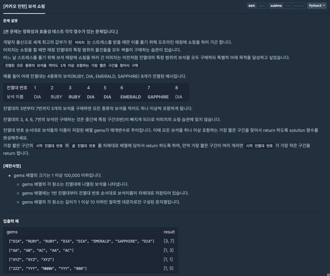 [Seop's의 코드풀이] 프로그래머스 보석쇼핑 - Python 본문