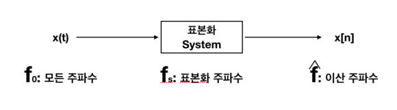 우리가 배웠던 연속 비주기 신호인 x(t)를 표본화 System에 집어넣으면 더이상 연속적이지 않은 이산 비주기 신호 x[n]가 된다.